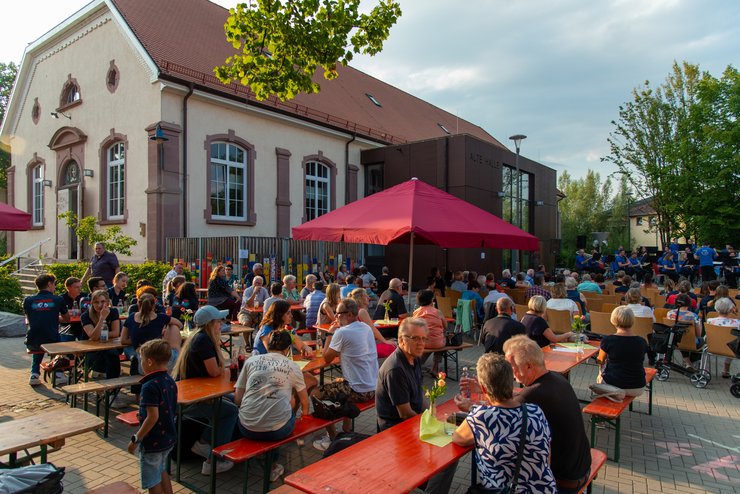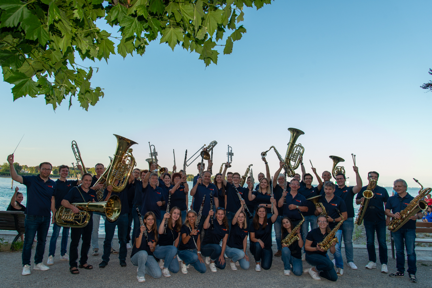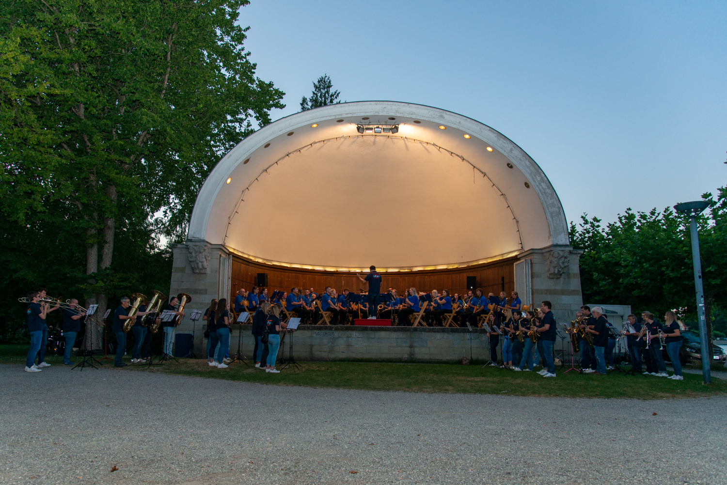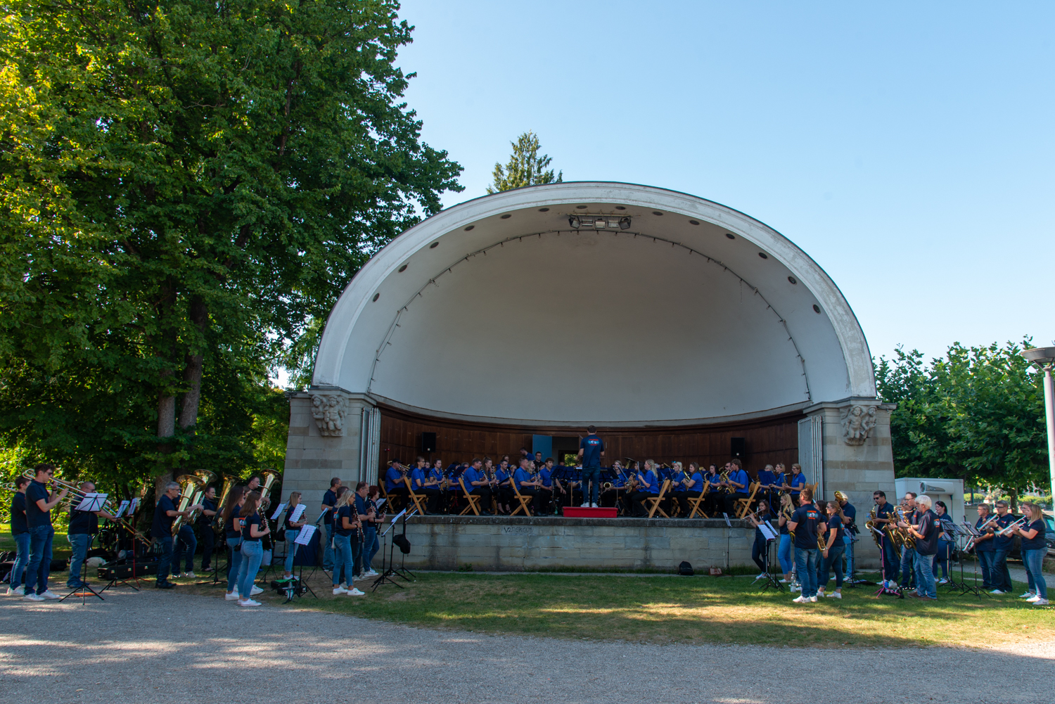 Schon am darauffolgenden Samstag kamen unsere Freunde aus Konstanz-Wollmatingen zum Open-Air Doppelkonzert an der alten Festhalle zu uns. Dieses mal startete der Musikverein Wollmatingen und wir spielten den zweiten Teil. Die gemeinsame Zugabe durfte auch bei uns nicht fehlen.