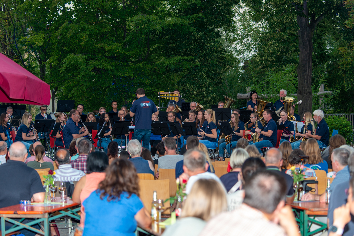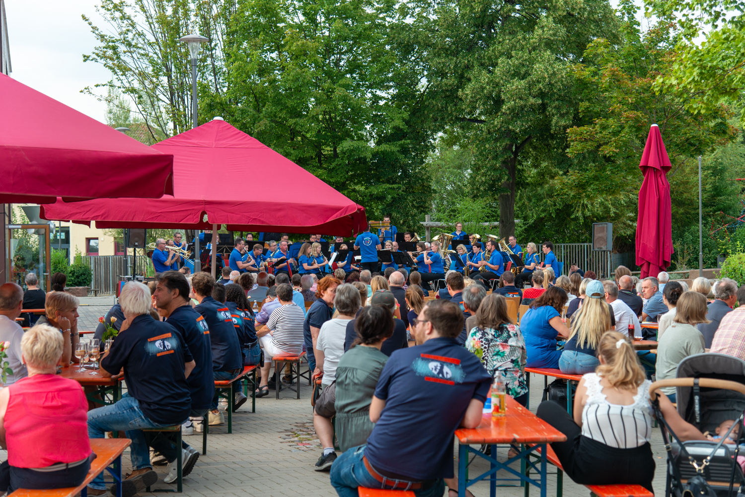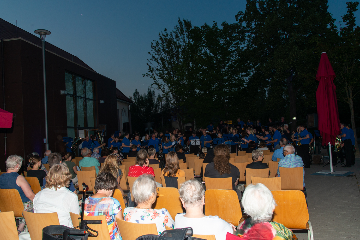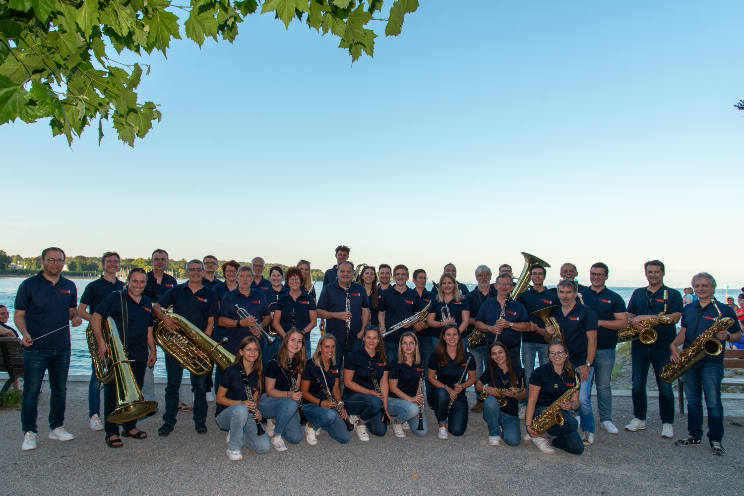Schon am darauffolgenden Samstag kamen unsere Freunde aus Konstanz-Wollmatingen zum Open-Air Doppelkonzert an der alten Festhalle zu uns. Dieses mal startete der Musikverein Wollmatingen und wir spielten den zweiten Teil. Die gemeinsame Zugabe durfte auch bei uns nicht fehlen.